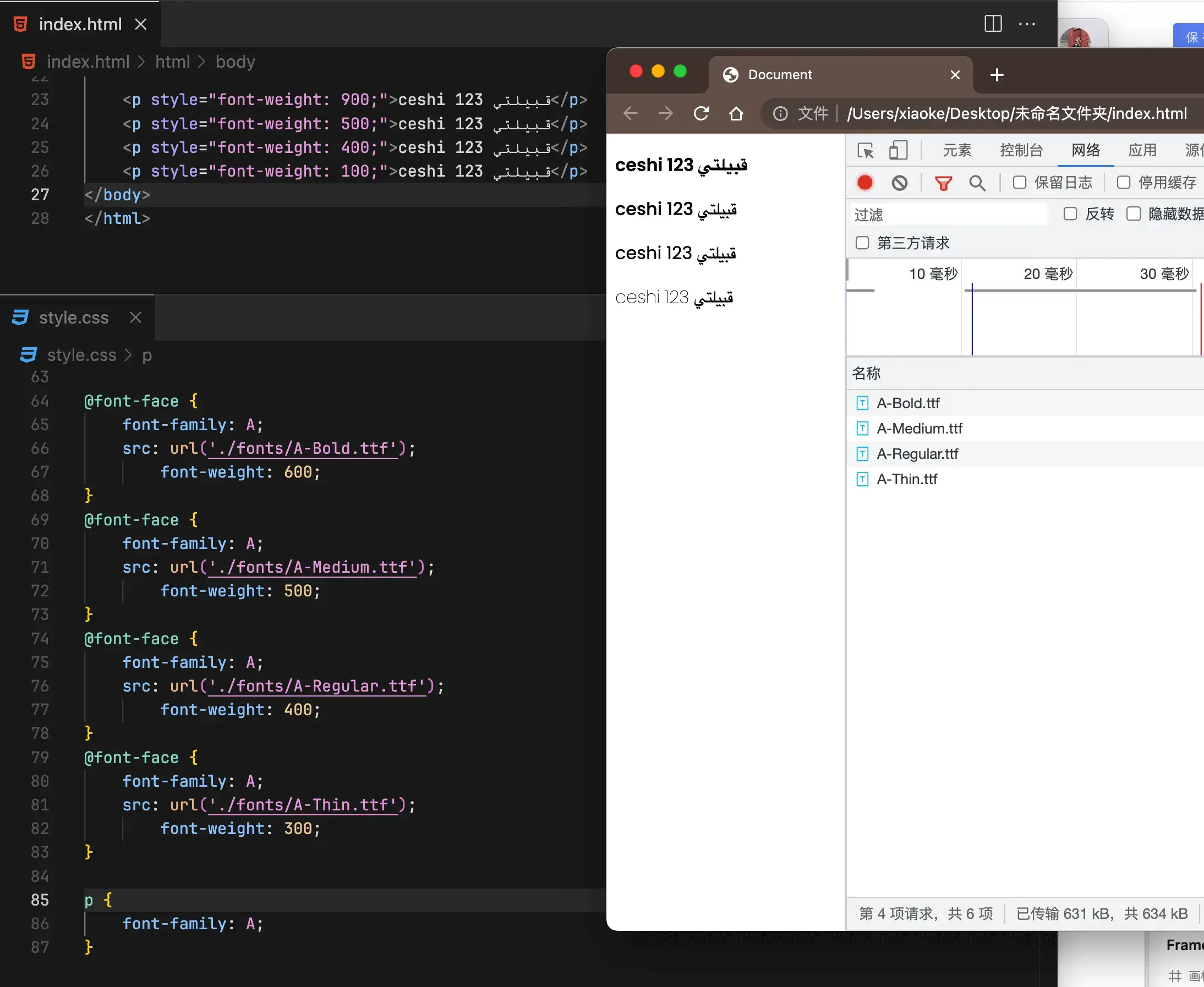 }注意,这里我们把字体名字都设为相同的,如下图所示,这样我们就成功的解决了第一个问题:不同粗细也要使用不同的字体包;